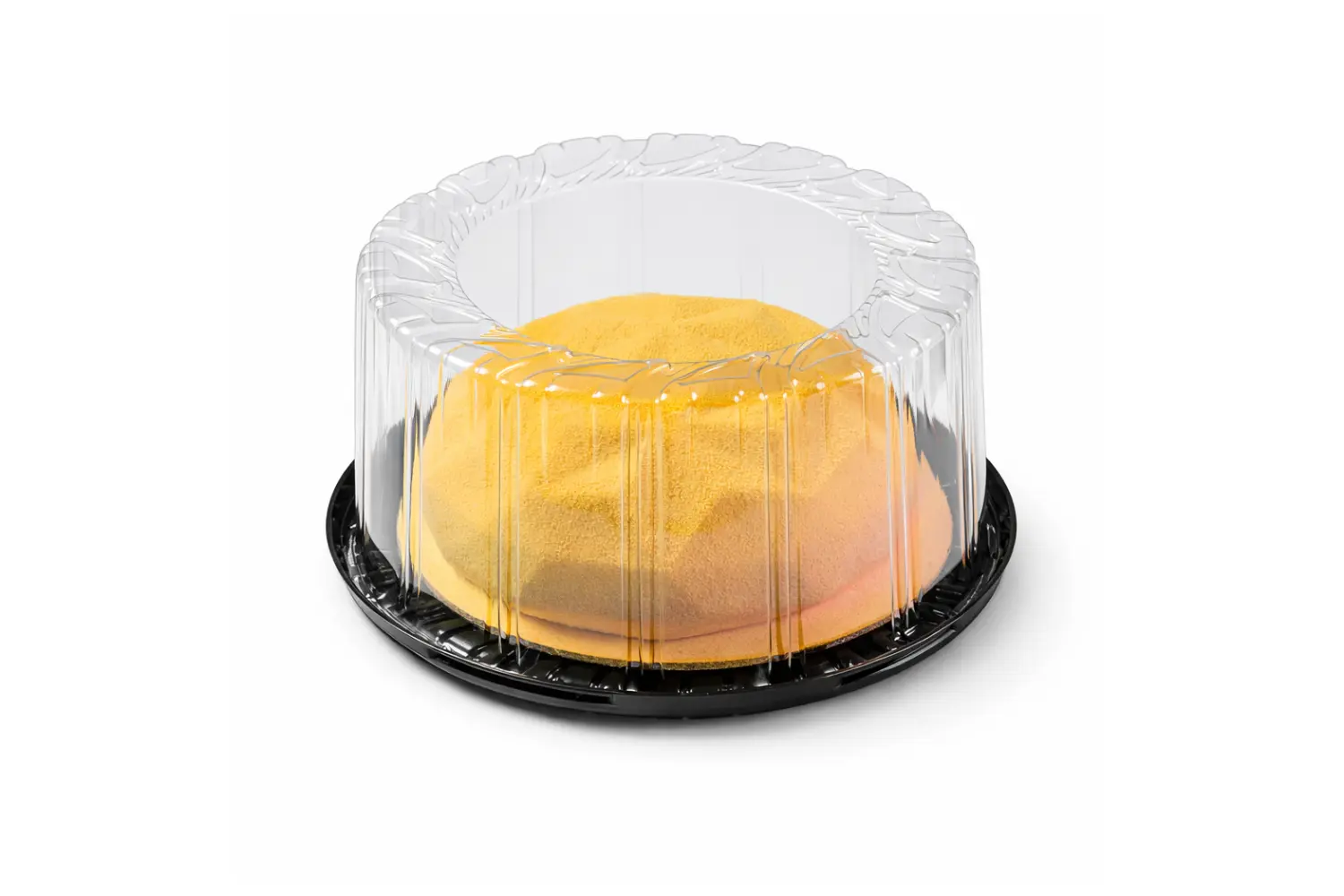 Plastikinės tortų dėžės dažniausia naudojamos su vienkartiniais padėklais – rekomenduojame rinktis 1-2 cm mažesnius nei nei torto vidinis matmuo, padėklai gali būti storesni (2400 g/m²) arba plonesni (1050 g/m²), priklausomai nuo jūsų poreikių. Toks sprendimas užtikrina gaminio stabilumą ir leidžia lengvai pateikti desertą klientui.