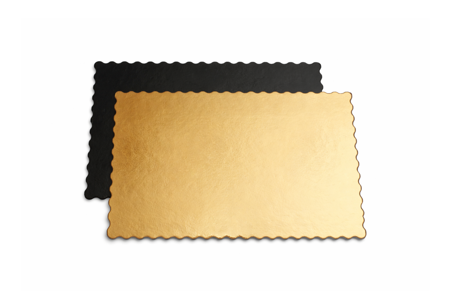 Šis padėklas pritaikytas tiek konditerijos, tiek kulinarijos gaminių laikymui ir patogiam serviravimui. Jis pagamintas iš 2 mm storio, tvirto ir nelankstaus kartono (2400 g/m²). Padėklas padengtas aukso spalvos poliesterio plėvele, kuri ne tik suteikia estetinį žavesį, bet ir užtikrina atsparumą drėgmei. Jis saugus naudoti tiesiogiai kontaktuojant su maistu, todėl idealiai tinka pyragams, desertams ir kitiems maisto gaminiams pateikti.